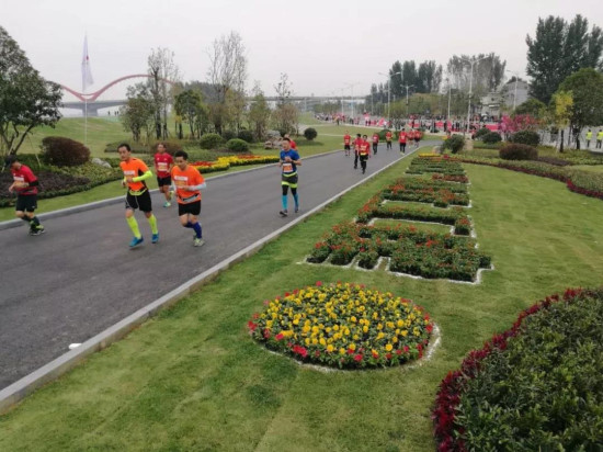 在接到通知后的两个月时间里,湖北工建项目筹备组人员经过多方协调,加大人员、设备和资金投入,科学组织、精心安排,全力以赴紧抓施工进度。完成垃圾转运约21万m3 ,外购种植土约27万m3,场内回填约8万m3,破除混凝土面板约8800 ㎡,地形整理约45万 ㎡,覆盖防尘网约110余万㎡,种植行道树3820棵,绿地内乔木种植2900株。完成了河堤赛道约3.6公里,并新增上、下堤赛道及2条救护车通道,1个救助站、3个呐喊助威平台,助力“襄马”顺利开跑。