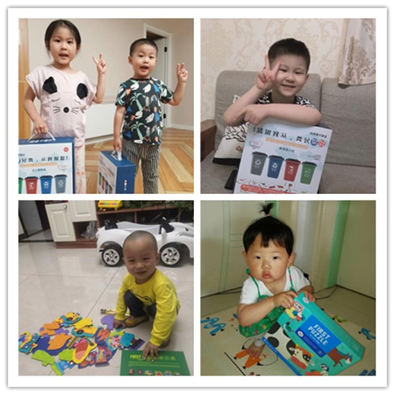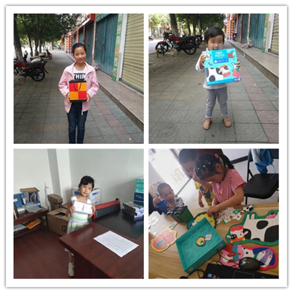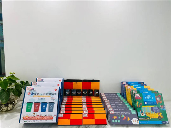 本次共为104名小朋友准备了礼物,分4个年龄段:0~3岁幼儿早教拼图、4~6岁垃圾分类益智玩具、7~10岁七巧板智力拼图、11~14岁学生钢笔。