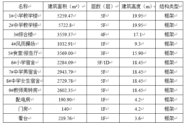建设规模:上津学校位于湖北省十堰市郧西县上津镇伍峪坪村,学校规划占地面积67058㎡(约100.58亩)。本工程拟建物为教学区、综合楼、生活及辅助用房,规划用地面积67058㎡,总建筑面积30254.22㎡,具体如下表: