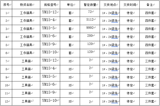 1.2 招标内容:本次锚具采购招标内容详见下表。