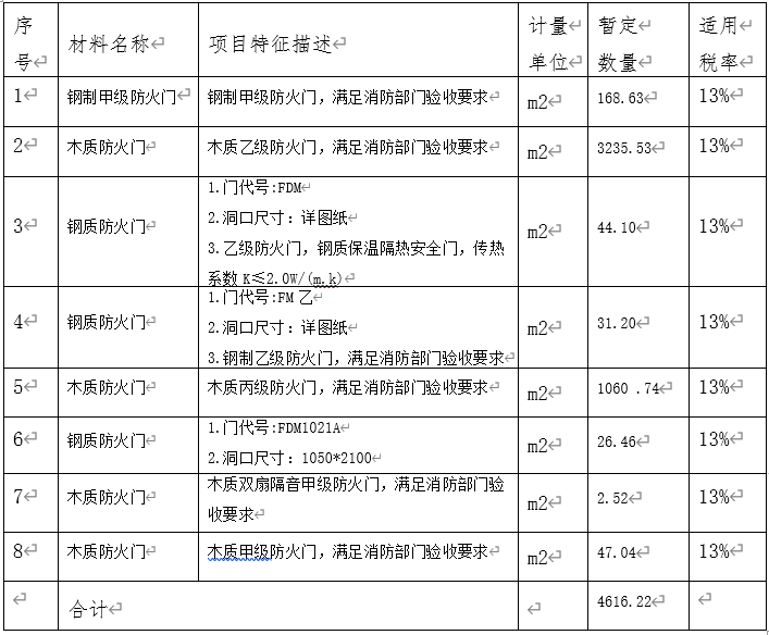 1.2 招标内容:本次防火门采购安装招标内容详见下表。