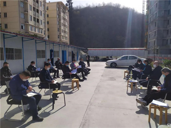 3月14日,迎接十堰市发改委检查工作会暨郧西县建筑领域复工复产现场专题会在基础设施公司郧西棚改项目车家沟安置小区施工现场召开。郧西县住建局局长纪大伟、总工程师付京辉,县质监站站长周四清、副站长舒涛,郧西县建投公司董事长兼总经理李复明、项目现场业主代表殷耀祥,湖北工建郧西项目负责人江杰、商务负责人胡波、项目副经理金剑及项目部分劳务分包单位主要管理人员参加会议。