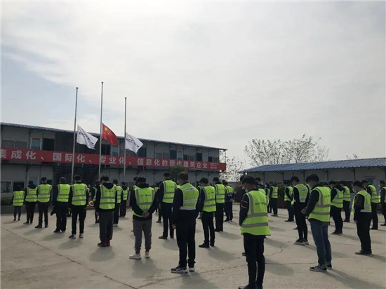 4月4日,全国哀悼。上午10时,湖北工建基础设施公司各项目部降半旗,广大职工肃立默哀3分钟,共寄哀思。襄阳党总支和当阳项目党支部还组织观看了武汉战“疫”全景纪录片《英雄之城》。