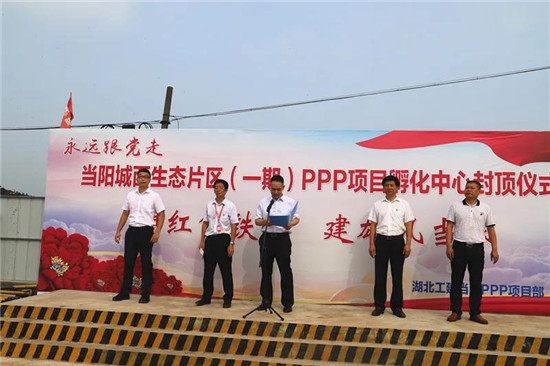 7月1日上午,湖北工建基础设施公司机关党支部与当阳项目党支部“建功新时代,永远跟党走”联合主题党日活动暨孵化中心封顶仪式在项目施工现场举行。当阳市政府相关领导,公司领导及机关支部全体党员、预备党员、入党积极分子,当阳项目全体员工,湖北工建当阳项目联合党支部全体党员参加活动。