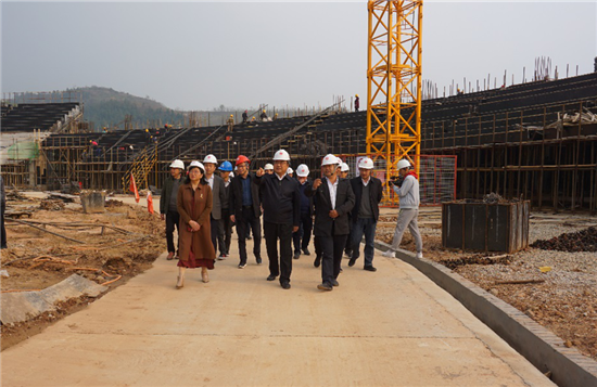 11月16日,郧西县委书记张涛,县政协主席王绪桔,副县长谭道军、郑大柱等一行到郧西文体中心项目视察,公司副总经理左海波、郧西县片区工程项目管理领导小组组长江杰、项目经理陶华涛陪同视察。