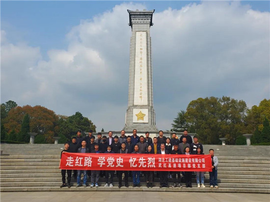 当天下午,武红高速项目党支部组织党员、团员和部分员工赴红安县红色革命教育基地开展“走红路、学党史、忆先烈”主题党日活动。在黄麻起义和鄂豫皖苏区革命烈士纪念碑前,全体同志列队肃立,向革命烈士及先辈鞠躬致敬,表达对革命烈士及先辈的深切悼念与崇高敬意。