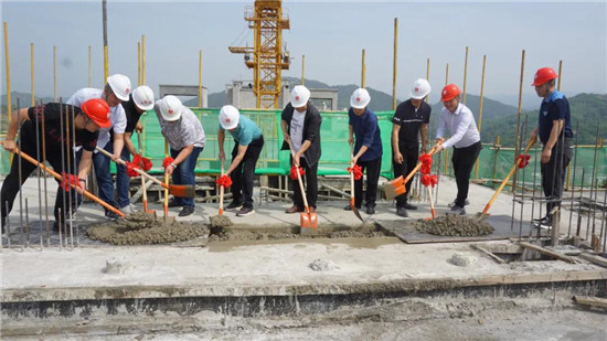 5月10日上午,随着塔吊将最后一斗混凝土吊起,各单位负责人共同执起金锹,一起完成最后一铲混凝土浇筑,郧西棚改一期车家沟项目7#楼主体结构顺利封顶,这也标志着经过两年零八个月的日夜奋战,该项目结构性工程全部完工。