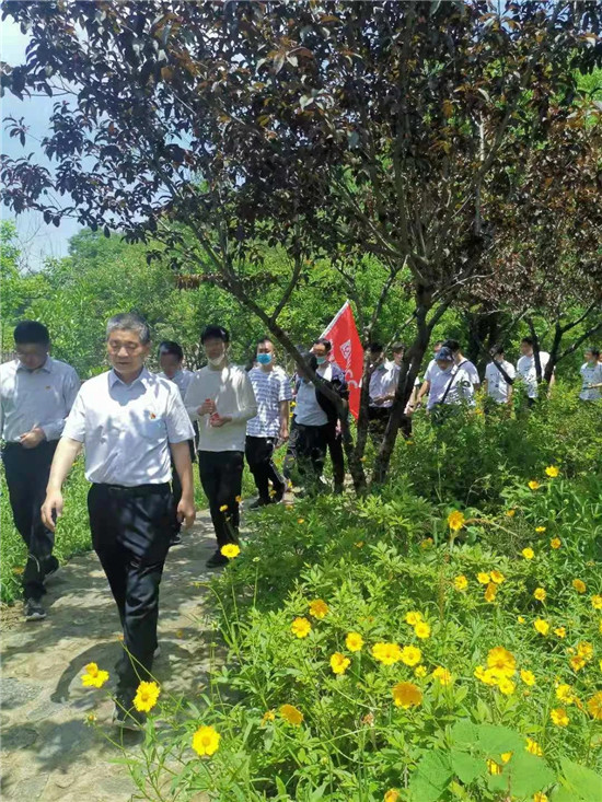 下午徒步重走老一辈无产阶级革命家走过的路至营地,开展知识性与趣味性兼备的团建小游戏,让员工在游戏中轻松学习党史知识。